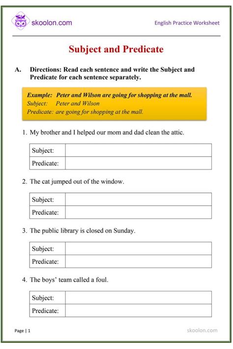 Title: - subject and predicate for 5th grade